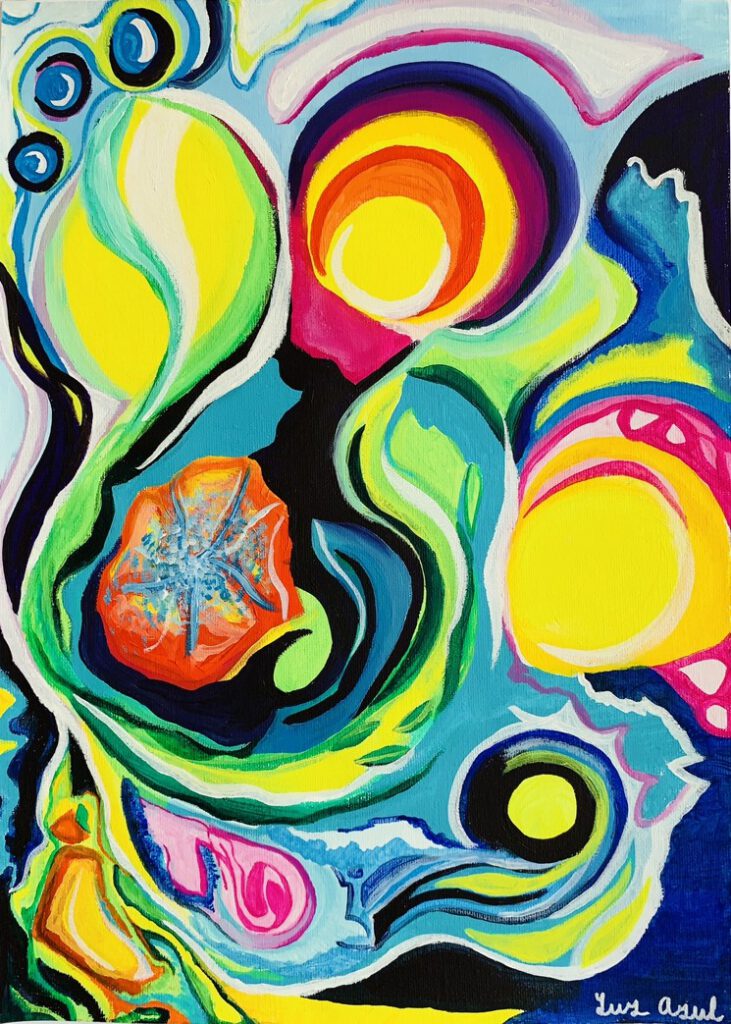 Each painting carries its own energy, inspiration, and story, which you can read in the artwork’s description. It is guided by my intuition, energy, feelings, and sense of harmony. I always aim to capture the flow of creative energy and a high standard as it moves through me.”