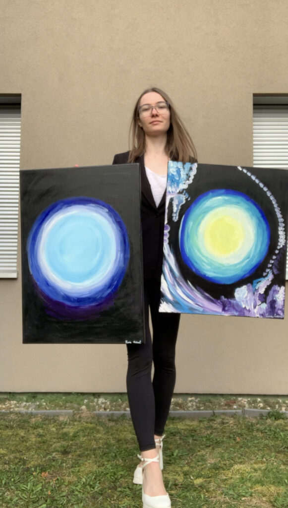 Each painting carries its own energy, inspiration, and story, which you can read in the artwork’s description. It is guided by my intuition, energy, feelings, and sense of harmony. I always aim to capture the flow of creative energy and a high standard as it moves through me.”