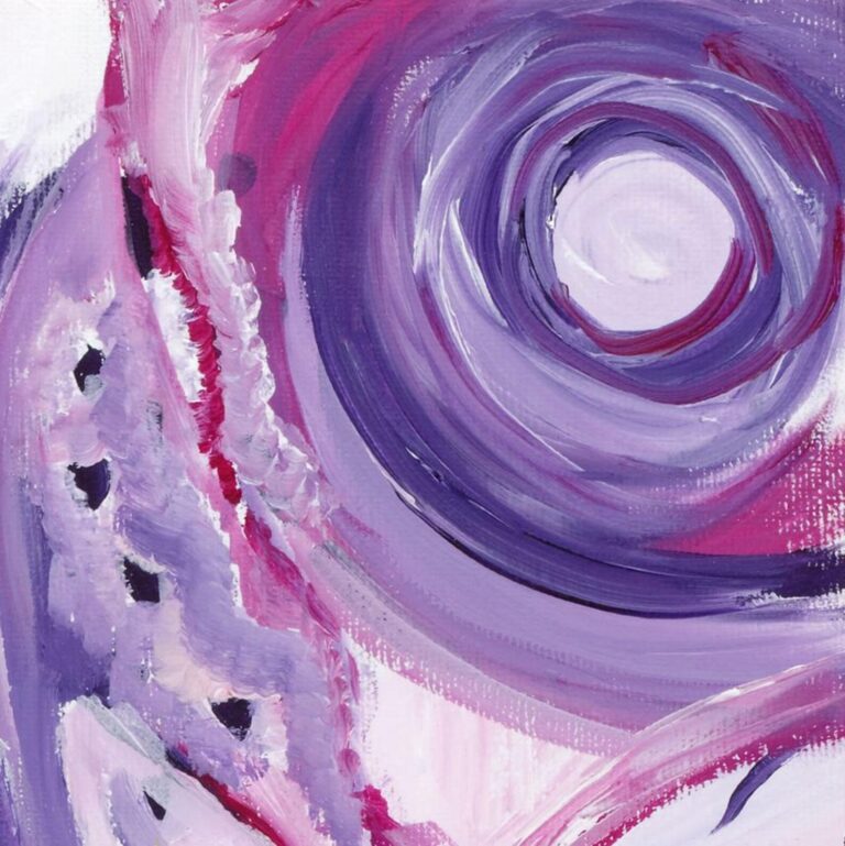 I also infused the artwork with energy to encourage positive abundance and beauty, symbolized by a yellow-hued crescent near the center of the canvas. The purple color represents harmony and deep affinity with the other shades present in the piece.